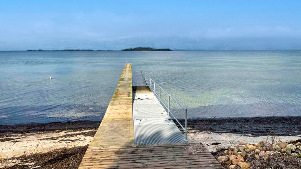 Der er sti til havnen (300 meter) hvor der i sommerperioden er kiosk/cafe og salg af vand og forfriskninger.