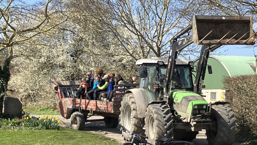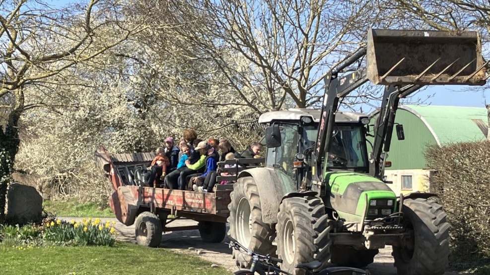 11:20 Opsamling på Avernakø havn. Med traktor og vogn, ø- rundturen starter.