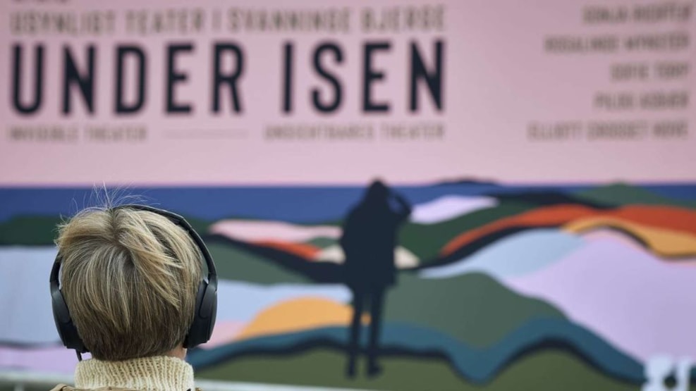 "Under Isen" hedder den usynlige teaterforestilling, der blander fiktion og drama med historisk virkelighed fra de lokaliteter, man bevæger sig igennem. Det er publikum, der giver fortællingen ben at gå på - 7 km i alt og det i et ret så opadgående terræn.